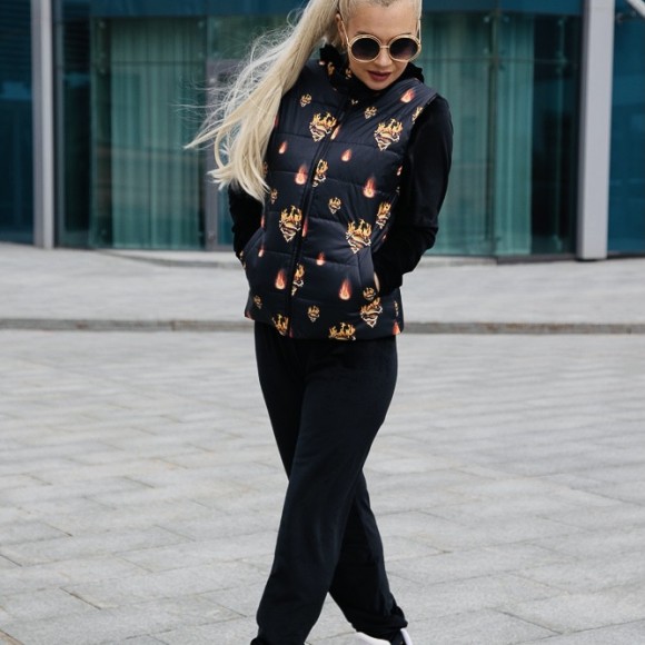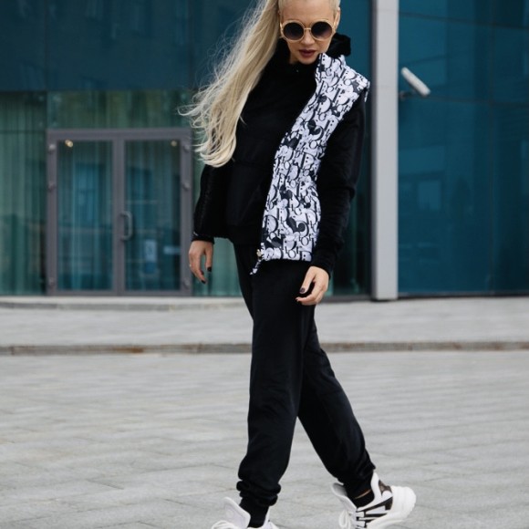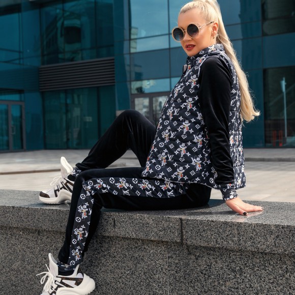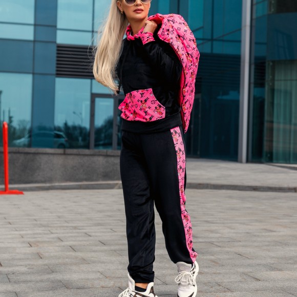 Велюровий костюм із капюшоном і кишеня-кенгуру та жилет двосторонній різні кольори