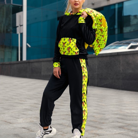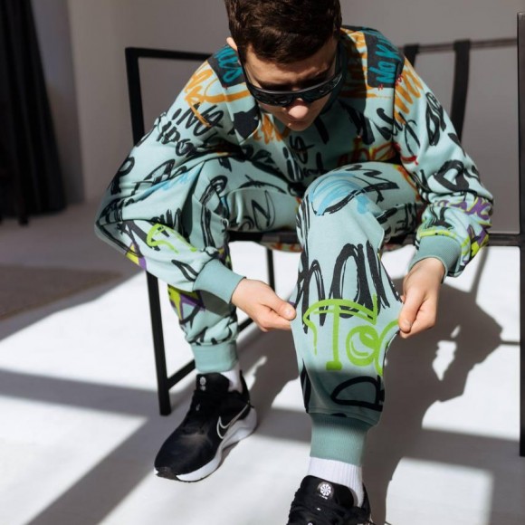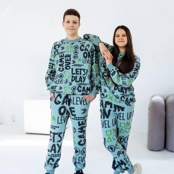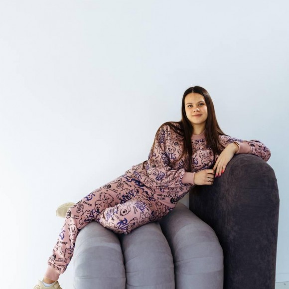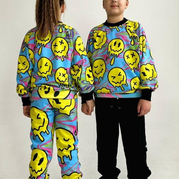 Весняний костюм повсякденний двонитка-петля свиншот та штани для підлітків принтований