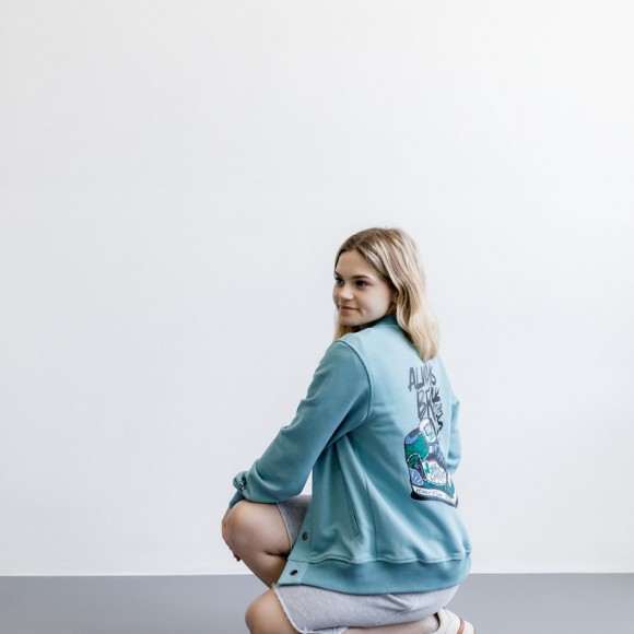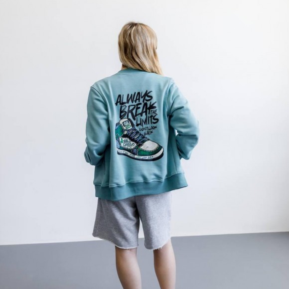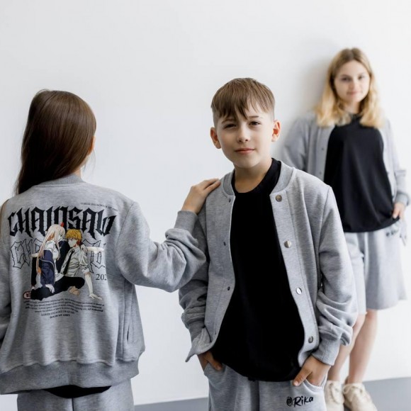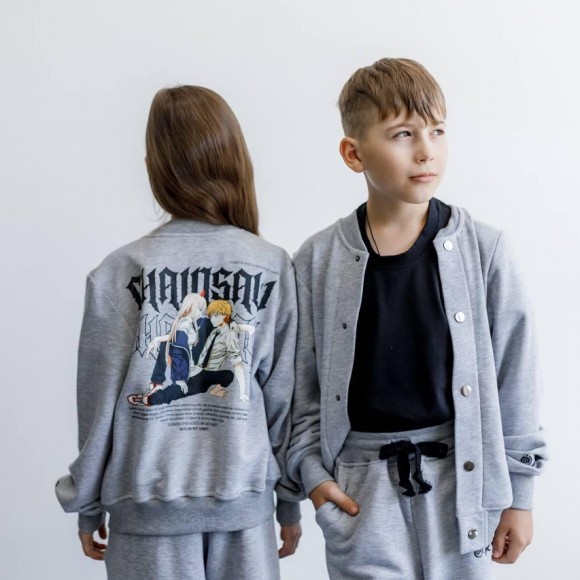 Бомбер стильний весняний на кнопках із кишенями з оригінальним принтом для підлітків двунитка-петля